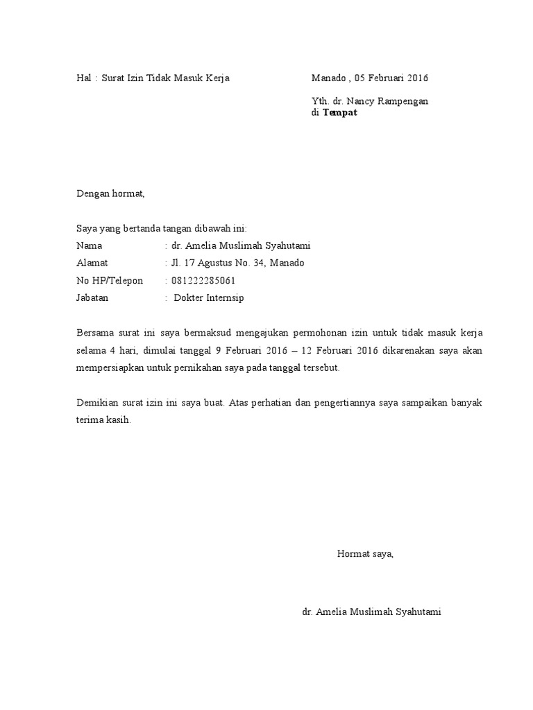 Surat Ijin Tidak Masuk Kerja Pdf